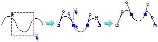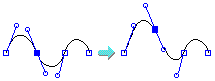 選択した固定点上でボタンを押してドラッグすると、選択した固定点すべてが変形され、範囲内のセグメント全体が形状を保って動きます。