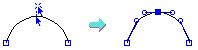 [図形の選択(部分選択・変形)]上でマウスのボタンを押し続け、表示されたアイコンの中から選択します。 - ベジエ曲線上の、固定点を追加したい位置にポインタを合わせ、ポインタが