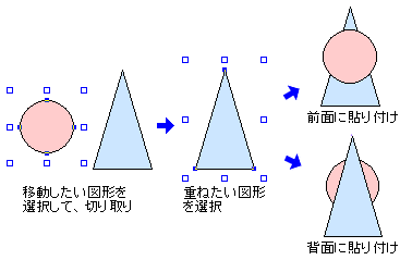 - [編集-重ねて貼り付け-前面に貼り付け/背面に貼り付け]を選択します。