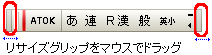- ATOKパレットの両端のどちらか一方のリサイズグリップ上にポインタを合わせて、ポインタの形が
