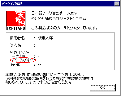 [ヘルプ]→[バージョン情報]で表示されるダイアログボックスのシリアルナンバーの項目に"パワーアップキット"の表示がある場合は、このアップデートモジュールを導入していただく必要はありません。(ダイアログボックスの表示例はこちら)