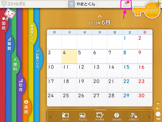 - システムアップデートが配信されること、画面右上の[せってい]に赤いマークが表示されます。