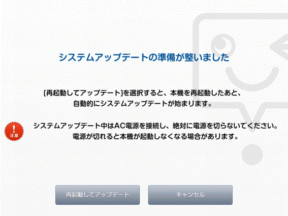 - 最新のシステムアップデートが見つかった場合、次の画面になります。