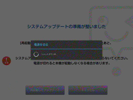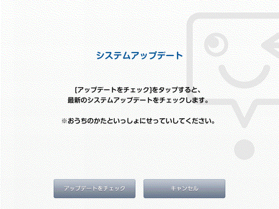 - 案内画面で「アップデートをチェック」を押し、システムアップデートがあるかどうかをチェックします。