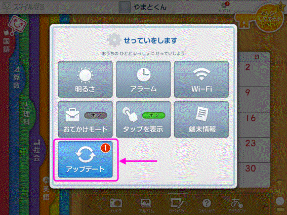 システムアップデートは、保護者の方にてタブレットを操作していただく必要があります。