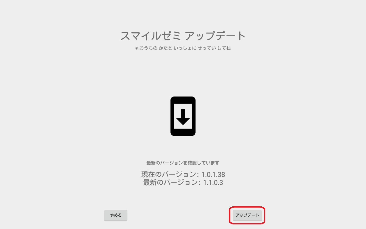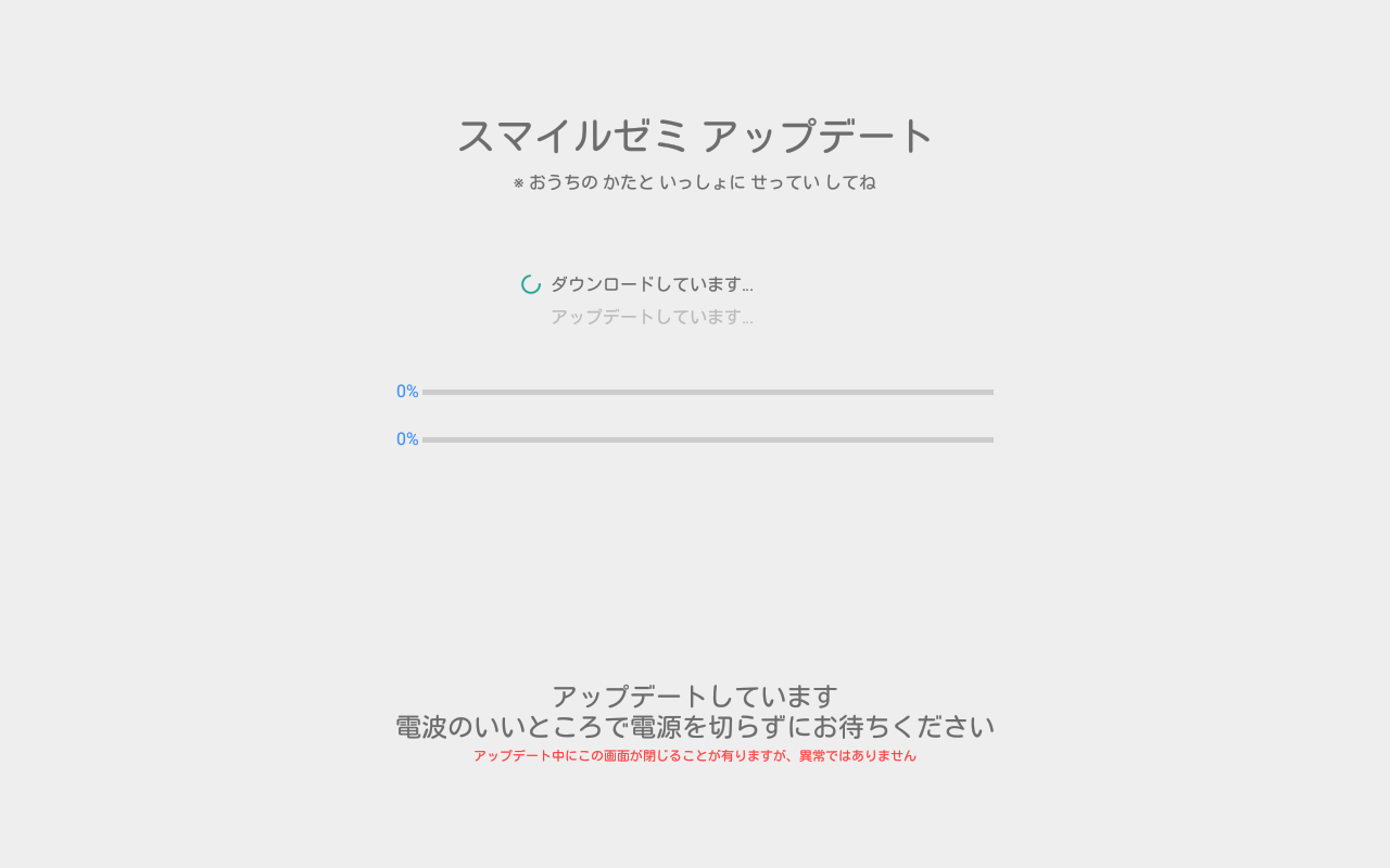 スマイルゼミでは、安定性・操作性の向上や機能拡張に対応するために、アップデートを配信することがあります。